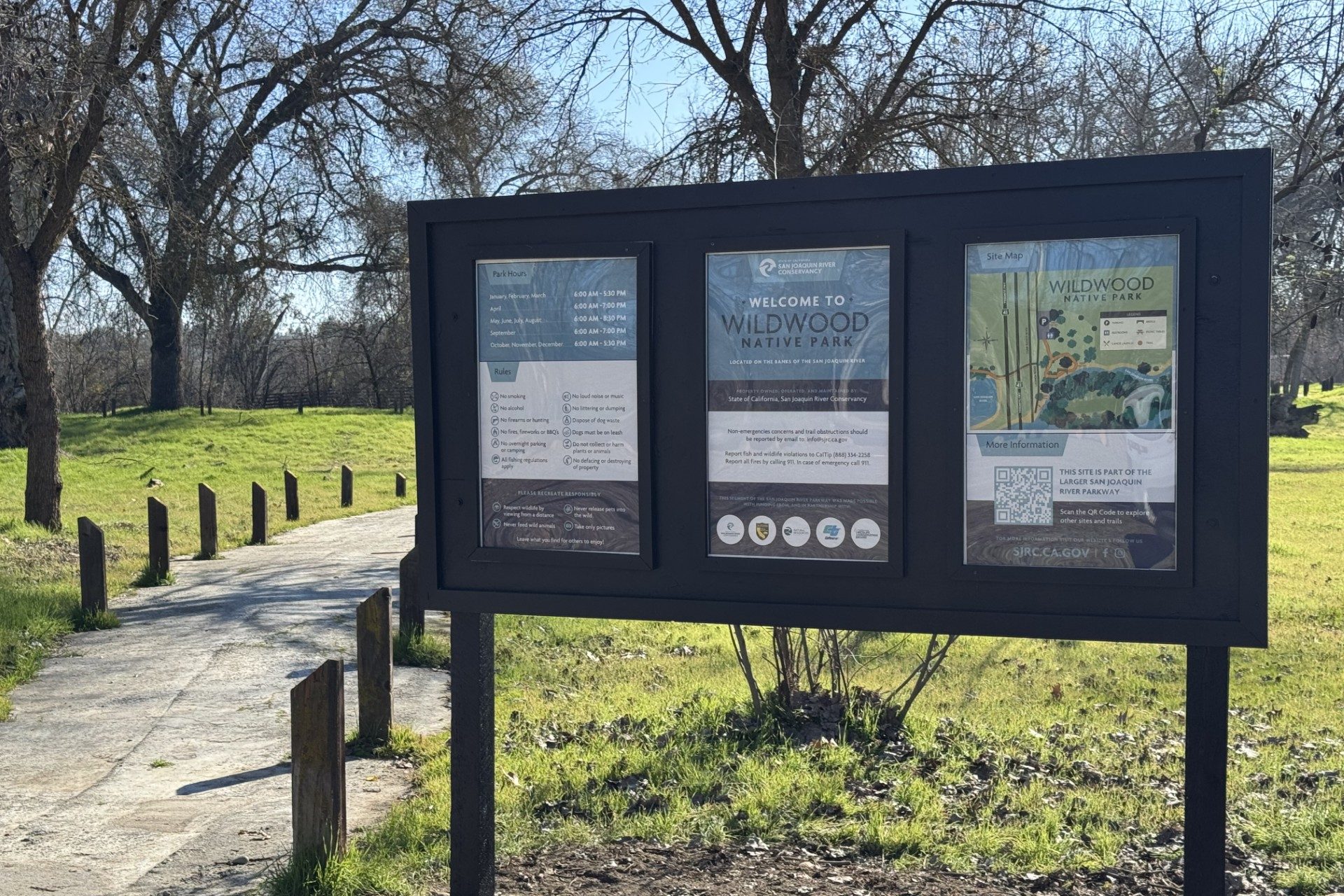 Wildwood Native Park is owned and operated by the San Joaquin River Conservancy.